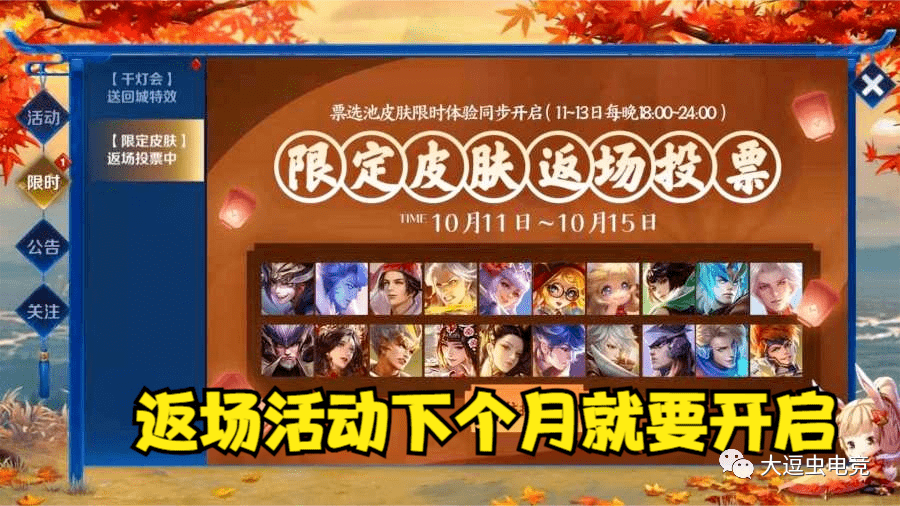 我要提醒大家:不要错过任何获取返场皮肤的机会,这些限时回归的皮肤都是珍贵的,一旦错过,可能永远无法拥有,一定要时刻关注游戏的公告和动态,以便及时获取最新的消息。