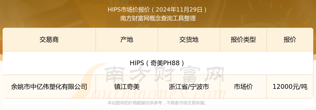 📈 最新HIPS价格行情概览