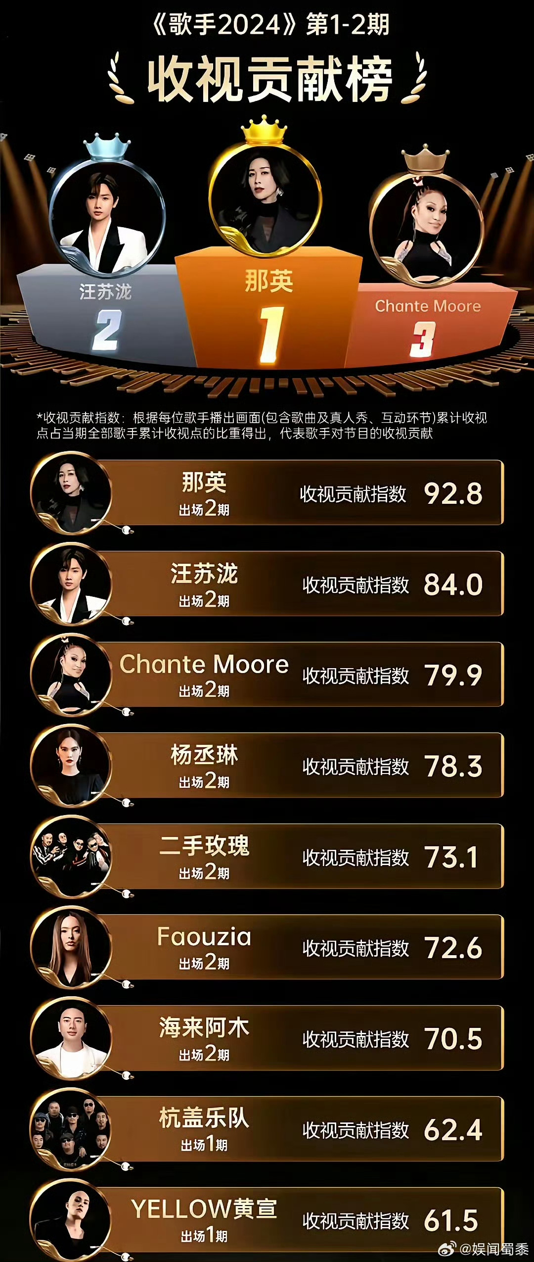 以下是根据大众投票、流媒体播放量和销售数据综合评定的歌手最新排行榜: