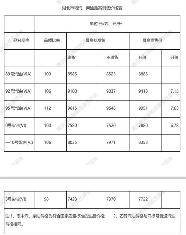 湖北汽油价格概览