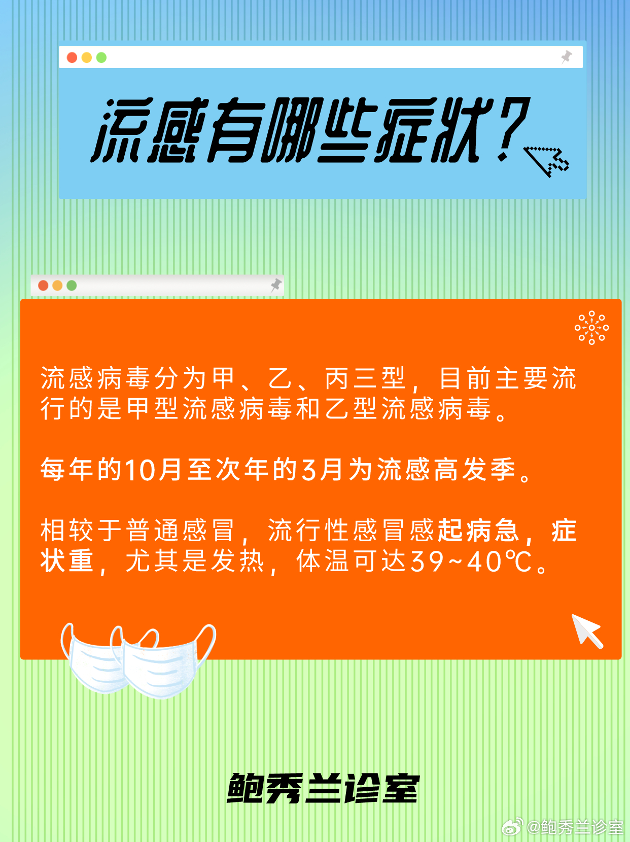 5、在《科普小贴士:如何预防流感?》部分,可以加入一些有趣的插画或图表,以及具体的预防措施和生活中的实例,让读者更加直观地了解如何预防流感。