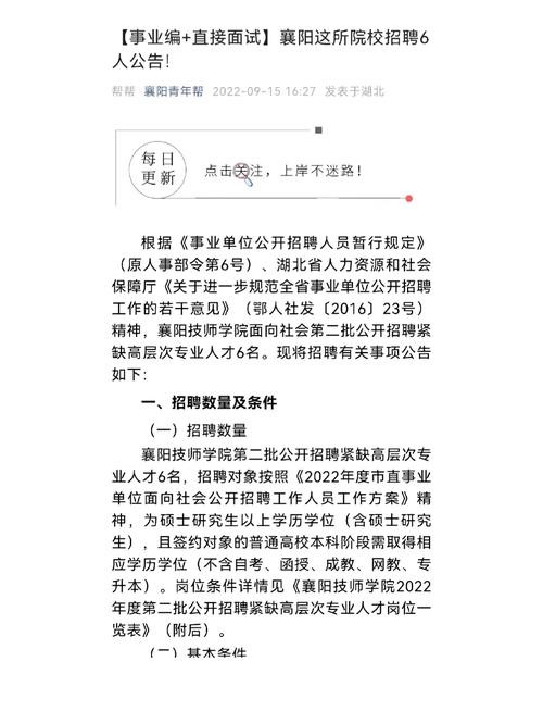随着襄阳的飞速发展,襄阳招聘网不断更新其最新招聘信息,在这个充满机遇与挑战的时代,我们鼓励大家积极面对变化,通过学习成就自信和梦想,让我们一起探讨如何通过不断学习和适应变化,找到属于自己的职业道路,实现个人价值。
